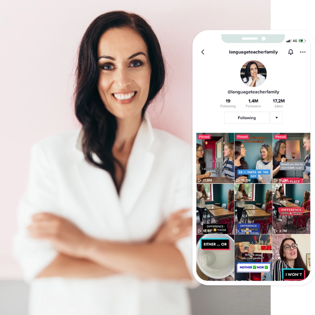 Since launching Language Teacher Family in Spring of 2021 she has grown a community of almost 2,000,000 people on TikTok & Instagram through viral easy to understand videos and language learning principles.